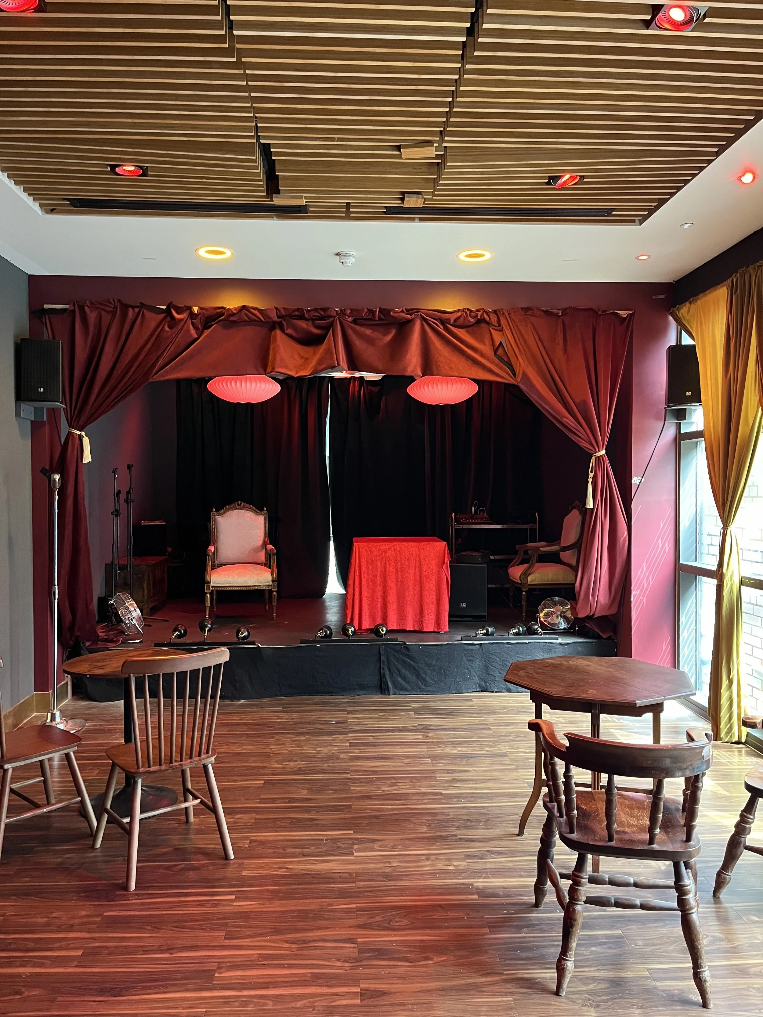 The Gold Bar - A larger and more public space. Includes a small stage. Perfect for live music and cabaret acts.